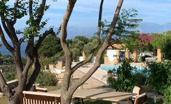 Very centrally located at the entrance to Koroni, the guesthouse is located in the middle of a beautiful property with a brilliant view of the sea and the mountains of the Mani. You can reach the town center with its restaurants and shops, as well as the nearby beaches and taverns in just a few minutes. The very well-kept garden and the spacious pool area invite you to relax. The pool is the private pool of the owner couple and can be shared by their guests and tenants of the guest house. Use at your own risk.