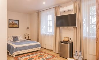 Маленький отель на несколько номеров. Номер удобный с балкончиком, со всем необходимым до мелочей. Персонал очень доброжелательный, огромное им спасибо! Есть кухня, где можно покушать, выпить чай, кофе. Завтраки на выбор по заказу отдельно. Есть маленький дворик, вход только из отеля. По соседству музеи сыра, сладостей, моды Снегурочки. В шаговой доступности рестораны, кафе, торговые ряды, набережная Волги. Мы очень довольны своим отдыхом в этом отеле.