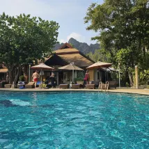 장점 - 수영장 수질, 뷰 너무 좋고 헬스장 있음, 직원들 친절, 바로 앞 라일레이비치!! 썬셋 명소!!! 자연친화적. 끄라비에 온 느낌 물씬 남!