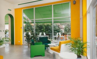 On the ground floor of the hotel there is a chain cafe with an author's cuisine based on vegetable products. Here you can try confectionery products of your own production, as well as dishes for a healthy lifestyle that you can take with you.