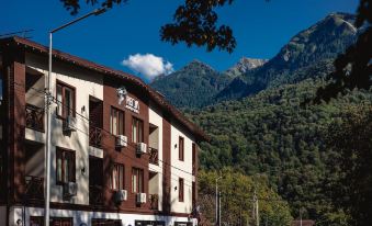 An apartment hotel in the very center of Krasnaya Polyana. from the nearest public transport stops, you can quickly get to the ski lifts. Cafes, shops, bars, pharmacies are located near the hotel. The distance to the airport is 39 km, to the railway station — about 6 km.