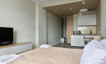 Karat Apart is located in Krasnoyarsk, in the business center of Krasnoyarsk, 4 km from the historical center of the city. The room has a kitchen set, Smart TV with a virtual assistant, Wi-Fi, air conditioning, kitchen utensils and household appliances. Rooms with a washing machine are available upon request.