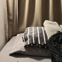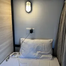 객실에는 강력한 에어컨, 개인 사물함, 담요가 제공되었습니다. 수건은 대여 가능합니다. 샤워실에는 온수가 나오고, 욕실은 깨끗했습니다. 헤어드라이어도 준비되어 있습니다.