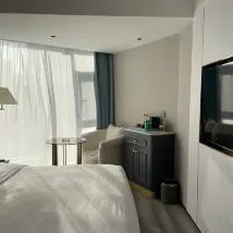 위치는 지하철, 기차역과 가까워 매우 좋습니다. 서비스도 좋습니다. 엘리베이터 장식이 좀 냄새가 나고 환기가 잘 안되네요. 로비는 같은 사장이 소유하고 있지만 서로 다른 두 브랜드가 온라인에 있고 독립적으로 접수됩니다. 객실은 잘 갖추어져 있고 잘 갖추어져 있지만 공간은 실제로 크지 않습니다. 옷걸이가 4개라서 목욕가운은 2개 남는데, 부족하네요. 특히 화장실 문을 열면 문이 막힙니다. 비수기에도 가격대비 성능은 괜찮은 편이고, 조식 부분에서는 개선의 여지가 있습니다.