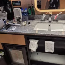 하지만 방이 정말 작네요. 싱크대와 바를 하나로 합치면 욕실은 변기와 샤워기만 있어서 정말 좁아요(변기 뒤의 공간이 얼마나 되는지 모르겠어요).