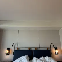 호텔 로비는 다른 Atour 및 Four Seasons 호텔과 비슷합니다. 복도는 좁고 방은 작습니다. 방 안은 여행 가방과 유모차로 가득 차 있습니다. 욕실도 작습니다. 침대와 바닥 사이에 미끄럼 방지 카펫이 없으므로 아이가 침대에 오르내릴 때 침대가 움직입니다. 이 호텔은 어린아이들에게 그다지 친절하지 않습니다. 그들이 제공하는 침대 보호대는 한쪽 면이 2미터 길이입니다. 부서진 것 외에도 침대에 들어갈 수도 없습니다. 침대 옆 램프가 너무 낮아서 난간과 겹쳐집니다. 너무 느슨해서 전혀 안전하지 않아요. 호텔의 연기 감지기는 침대 바로 위에 있으며 흰색으로 깜박입니다. 밤에 불을 끄면, 두 개의 눈이 끊임없이 반짝이는 것과 같습니다. 우리는 이틀 동안 머물렀는데, 밤에는 직원에게 테이프로 덮어달라고 부탁했습니다.