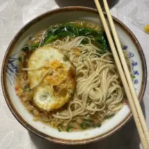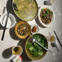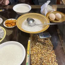 아침 식사는 국수나 쌀국수만 먹기로 했는데 아주머니가 너무 친절하셔서 죽과 반찬까지 준비해주셨어요.