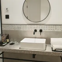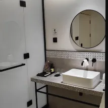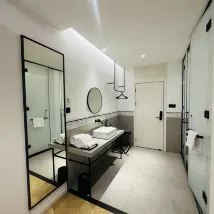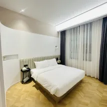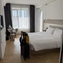 객실은 깔끔하고 세련되었지만, 거리 쪽으로 나 있어서 소음이 꽤 있었습니다. 종이와 침구류 등 편의 시설의 질은 보통 수준이었습니다. 세면대에 핸드솝과 쓰레기통이 없어서 세면도구를 버리는 데 불편했습니다. 하지만 가성비는 꽤 좋았습니다.