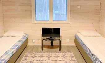 The cabin has 2 bedrooms, one with 2 single beds and another with 2 single beds. In addition, there is a spreadable sofa bed for two in the living room.