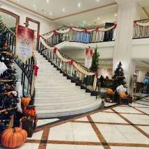 10월이 곧 다가오는데, 로비는 이미 할로윈 장식으로 꾸며져 있어요.