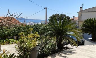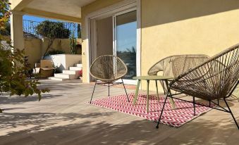 In a residential neighborhood close to the city center and the old port, this comfortable and independent 2-room apartment was renovated in 2022. It is located on the ground floor of a villa with no direct overlook, offering a partial sea view, a large private 30m² terrace, and free enclosed private parking.