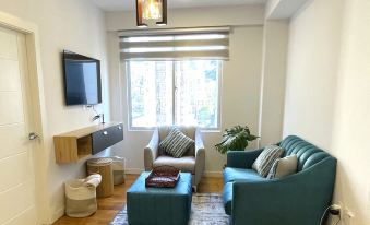 Inviting Living Area: After a day of exploration, unwind in our welcoming living area. Sink into plush furniture, catch up on your favorite shows on our smart TV, and bask in the warm ambiance created by abundant natural light.