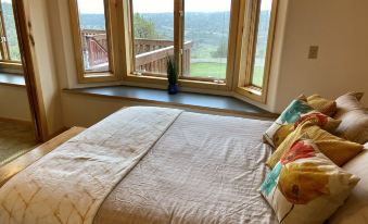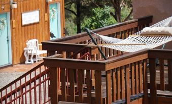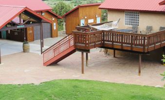 There are 2 outstanding decks to take in the mountain air and watch for wildlife. 1 upper deck is located out the back door of the kitchen. It is a great location for morning coffee or relaxing in the double hammock. It overlooks a gorgeous waterfall feature that attracts all kinds of butterflies, birds, deer and elk. If you love to sit quietly, listen to the sounds of nature and watch for wild life, this is the spot! The second upper deck is the full length of the front of the house. It has a door access from the living room and from the master bedroom. There are 2 comfortable Adirondack recliners outside the sliding glass doors of the master bedroom.