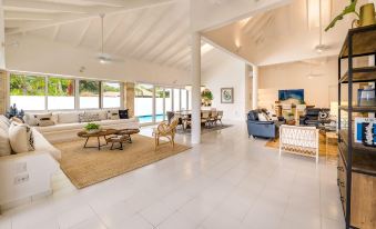 This villa provides lots of natural light with folding glass doors overlooking a beautiful backyard and La Romana Country Club golf course, designed by Pete Dye. Total renovation was completed in September 2021. The entrance leads into a spacious great room with a bar, reclining couches, an 85" screen tv, large dining table that seats 12, and a separate seating area to enjoy drinks, games or reading. The back patio provides outdoor cooking, dining areas, sitting areas next to a heated pool with a built-in jacuzzi. Extensive outdoor lighting illuminates the spacious grounds and tropical landscape at night.