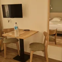 Personnelles serviable, chambre propre et bien équipée avec kitchenette et table et chaises, bonne literie, petit plus un balcon, au calme et près des commerces.👍 Juste le pommeau de douche qui fuyait !
