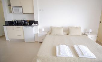 We enjoyed our stay here in a small one bedroom apartment. The bed is so comfortable! We slept wonderfully! We have a view of the Atlantic Ocean, are a five-minute walk from the beach and a 10-minute walk from the town. The restaurant downstairs is good, too. Pedro is very friendly and helpful. He booked our boat tour for us and gave us good recommendations.