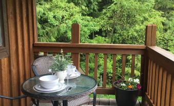 Enjoy your morning coffee on the covered balcony -- in your pajamas, if you like! Relax by the creek as you watch the water tumble over the rocks, explore the shaded cedar groves and ferns along the mossy creekside, and let the stress of busy life melt away as you breathe the clean mountain air.