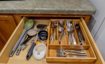 If you feel like whipping up a meal- don't worry, the fully stocked kitchen has all that you would need- then sit around the dining table to enjoy.