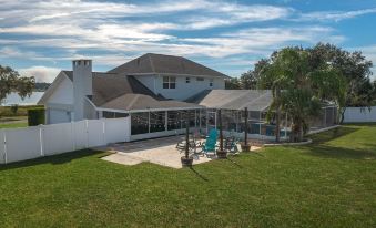 Large 4 bedroom home with plenty of space for families. Screened in-ground pool with hot tub and a screened porch with tables and seating for 12+. Fenced backyard for pets, palm trees, patio, fire pit and gas grill. House is stocked and ready for you with shampoo, conditioner, body wash, towels, blow dryer, iron, ironing board, snacks and more, even a water bottle and chocolate on the nightstand to kick off your stay! Kitchen- Complete with coffee bar and cozy breakfast nook, this kitchen has everything you need to feel at home! Equipped with a Keurig Duo coffee pot so that you can use a single serve kcup or make a pot of coffee. Kitchen is stocked with pots and pans, crock pot, electric skillet, blender, toaster, dishes, utensils and basic seasonings. Bonus: french press & moka pot. Our family loves the walking trails around the lake, almost guaranteed to see some Sand Hill Cranes. Only a few steps from the front door! Want to take the kids to a playground? You have two within walking distance. Basketball, skateboarding or boating? Also, all within a short walk. Making core memories that last!