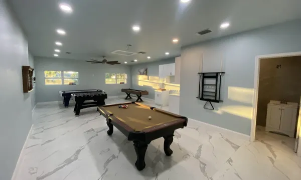 This is a perfect place to relax and have lots of good times. All the back yard and games are private for guests only. (See picture)There is no life guard on duty. The owners of the property, will not beheld liable for accidents, pool-related, sea wall, lake or dock accidents, drowning, or bodily harm/personal injuries. Swimming is not permitted in Lake as dangerous wildlife may be present and boat traffic poses a risk to injury.