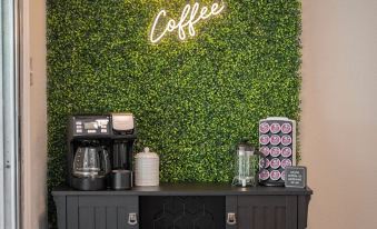 • Fully Equipped Kitchen: Whip up delicious meals in the stylish kitchen, complete with high-end appliances and a cozy dining area. Additionally find a coffee bar that it stocked with complimentary K-Cups and Creamer.