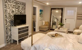 Located in the iconic Applewood Neighborhood, close to downtown and our beautiful Rocky Mountains. Enjoy what this adorable studio bungalow has to offer. This gorgeous retreat features a cozy queen bed, a refreshing shower, and convenient amenities like WiFi and AC. Guests can unwind in the soothing ambiance of this charming space, perfect for a relaxing getaway. Experience what Lakewood has to offer with a stay at our bungalow. Must be ok with 3 sweet dogs greeting you on your way to your suite as you will go around the back yard to enter and down a flight of stairs to your suite. About pets:No pets allowed.About children:Children allowed: ages 0-17.About smoking:Smoking allowed: in designated areas.About events:No events allowed.