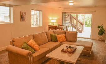 Or, if staying in is more your style you'll have a relaxing stay in this large 2,400 sqft. home surrounded by plenty of trees–even the occasional horse strolling by!