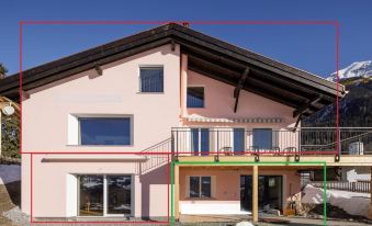 165 m2. More information by the provider: Large vacation house. Quiet location with a wonderful view to the south. Suitable for large families and small groups. Comfortable, functional furnishings; plenty of room for various interests. It is possible to arrange booking directly with the owner. Shop (groceries) 50m above the post bus stop. Practice ski-lift and cross-country ski trail on the upper end of the village of Lantsch. Ski area and ice rink in Lenzerheide/Valbella (ca. 10km)