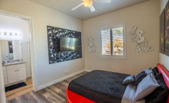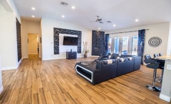 Welcome to my modern completely remodeled 3400 square foot house! Strip views from the backyard, master bedroom and living room. Very spacious and accommodates up to 12 people comfortably. 40 foot heatable pool and jacuzzi. Basketball court, golf putting green and a huge kitchen island.   Has 5 bedrooms with 4 of them having an in suite personal bathroom. High speed internet and a basic cable subscription. Each Bedroom has it's own smart TV and the living room has a huge smart TV.
