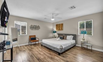 Indulge in a refined Las Vegas retreat at this sophisticated one-story home, ideally located in the coveted Medical District. A peaceful sanctuary just moments from the city’s iconic attractions, you’ll find everything you need within easy reach—from the lively Fremont Street to world-class entertainment and the upscale shopping of the Strip. Relax in the expansive hot tub, dine outdoors under the stars, or savor a meal on the state-of-the-art propane BBQ.