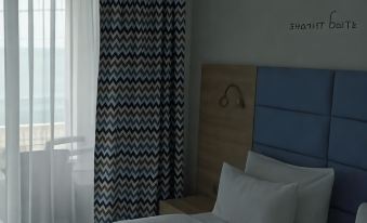 Испорченный отдых. Отель новый, чистый, но находится рядом с вокзалом и все приезжающие идут искать место проживания на отдыхе сюда же, отчего создается ощущение проживания как на вокзале. В общем это так и есть. Ресторан в отеле отсутствует, приходится искать что-то рядом. Сами понимаете, что проснувшись утром крайне не хочется шляться по кафам в поисках завтрака. Персонал остался в реалиях работы в частной мини гостиннице, когда каждый рассматривается на предмет потенциального нарушителя-разрушителя имущества, а из этого выросла целая философия дополнительного заработка (нам пытались со скандалом предъявить испорченное постельное белье, которое якобы уже не отстирать потому что у гостишки нет химчистки). Кроме того, пытались взять с нас наличными деньгами за перестилание белья, пользование парковкой. По моему мнению это дополнительный заработок горничных и администратора, о котором не знает собственник этой гостинницы и налоговая. Собственный пляж отсутствует, как в прочем и пляжная территория, не смотря на близость к морю, потому что частные пляжи - это миф, который разбивается о нормы законодательства. Волнение свыше 3-х баллов не оставляет от этого пляжа ни сантимметра. Мыться в номере невозможно, так как отель создан для любителей контрастного душа, а никак не для любителей "тепленькой". Роскошь, знаете ли. В целом, не рекомендую. Затраты не оправдывают себя - жили в двухкомнатном делюксе (фактически в двух смежных номерах) по цене четырехзвездочного отеля, которые по обыкновению включает в себя сервисы, территорию, развлечения. Здесь же этого ничего нет. Лишь только вид на море!