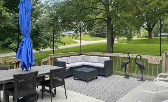 Your family will be close to everything when you stay at Aire Leclaire! Within walking distance from downtown and 2 blocks from American Pickers. This modern 2 bedroom, 1 bath home is a block away from the tugfest parade route. A barnyard turned farmhouse in the 1940’s, this home completely remodeled with the modern farm charm it has today. In town for a day or several, enjoy outdoor amenities, a lighted deck, outdoor couch, and table. Inside, a modern LED fireplace mixed with rustic beauty.About pets:Pets allowed: limit 3 total.About checkOut:Check out before 10:00 AM.About children:Children allowed: ages 0-17.About checkIn:Check in after 2:00 PM.About smoking:Smoking is not permitted.About minBookingAge:Minimum age to rent: 21.About events:No events allowed.