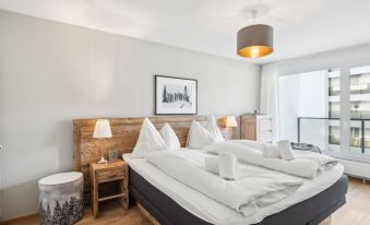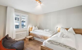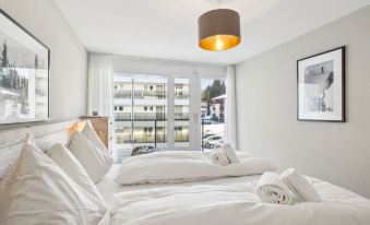 House Sotmirana / 3rd floor – left / Elevator / Wi-Fi yes / 1 room with double bed / 1 room with bunk bed and single bed / 1 bathroom with toilet and bathtub / 1 separate toilet All lakeside apartments at house numbers 4-8 are located in the center of Lenzerheide and feature a south-facing balcony. They are also directly adjacent to the ski slope/cross-country skiing track and in close proximity to the free sports bus and various shopping options. A great starting point for all winter/summer activities for the whole family. (The same house Sotmirana also houses apartment No. 55)