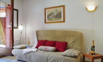 Residence "Les Chamois", 2 storeys. 700 m from the centre of des Houches. Shop, supermarket 150 m, restaurant 50 m, bakery 150 m, bus stop 100 m, railway station 1.1 km. Golf course (18 hole) 10.2 km, tennis 8.1 km, indoor tennis centre 8.1 km, sports centre 8.2 km, mountain railway 6.8 km, skisport facilities 1.8 km, ski school 2.6 km, cross country ski track 2 km, ice rink 7.9 km. 1-room studio 20 m2, on the ground floor. Dining room with 1 double sofabed (140 cm, length 190 cm), TV. Exit to the patio. Entrance hall with 1 bed (90 cm, length 190 cm). Kitchenette (2 hot plates, kettle, microwave, electric coffee machine). Bathroom, sep. WC. Electric heating. Patio, south-east facing position. Terrace furniture. Beautiful view of the mountains. Facilities: Internet (WiFi, extra). Parking. Please note: TV only FR. Smoke alarm. Ski storage. 741430001104B