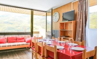 On the 10th floor over looking the centre of Les Menuires Two bedrooms sleeping 6 with room in lounge for more tiered heads. All you need for a great holiday