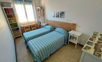 The apartment, about 80 square meters, is located in a very quiet but central area, 500 meters from the sea and the train station. It has two bedrooms (one double and one with two single beds), a living room, an entrance hall, a very equipped kitchen, a small bathroom and a small balcony.