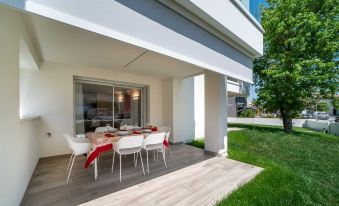 The apartment can accommodate up to 6 guests and is located on the ground floor. You will find a modern living room with a double sofa-bed, a fully equipped kitchen with an induction hob, a large fridge, freezer, dishwasher and microwave, two full bathrooms with a shower box, a comfortable room with a double bed, a second modern room with two single beds, three large equipped terraces where you can enjoy your time during your vacation and a beautiful garden with exclusive use.