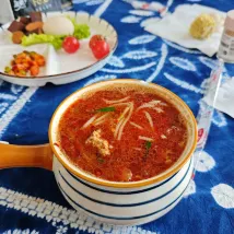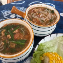 아침에 어느 젊은 여성이 쌀국수를 끓였는데, 정말 맛있었어요.