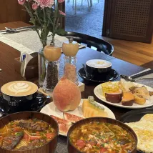 호텔의 아침 식사는 종류가 많지 않지만 야채와 과일 주스가 신선하고 크루아상과 바나나 케이크가 매우 맛있습니다. 이틀 연속으로 작은 냄비 쌀국수를 주문했습니다. 꼭 해보세요~