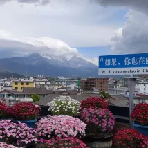 세 번째 포인트는 옥상 테라스가 너무 아름답고 옥룡설산을 24시간 즐길 수 있다는 점이에요!