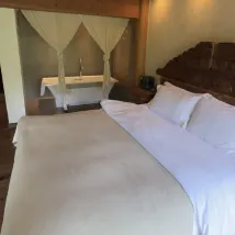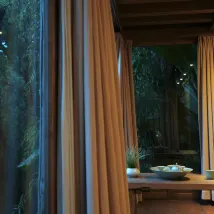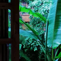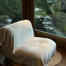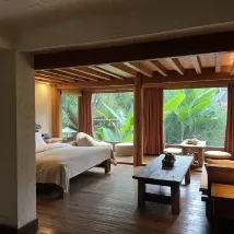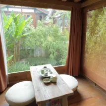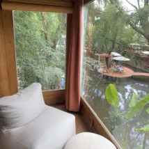 이 숙소에서 서로 다른 방으로 2일을 묵었는데 각 방마다 고유의 매력을 갖고 있습니다. 이 방의 매력은 사방으로 뚫린 창에서 나옵니다. 주위의 고즈넉한 풍경이 방 어디서나 보이는 것은 물론 시간에 따라 빛이 들어오는 방향이 달라져 방의 분위기 또한 달라집니다. 방 안의 빈백에 앉아 아름다움을 만끽하는 경험이 참 좋았습니다.