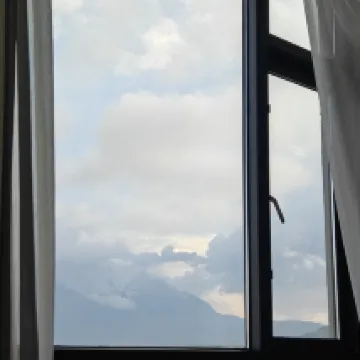 침대에서 자면서 눈 덮인 산을 볼 수 있습니다! 엄청난! 환경도 좋고 방도 깨끗해요.