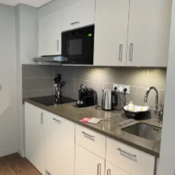 호텔의 위치는 중심부에 있어 식사와 쇼핑에 편리합니다. 아파트 호텔은 아름답게 장식되어 있으며, 객실은 넓고 식기류가 완비되어 있습니다. 유일한 단점은 일회용 슬리퍼가 제공되지 않았다는 것입니다.