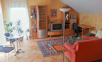The living room (in an interesting construction method) is very pleasant and balcony doors through several very bright and friendly. Herein is a Eckcoach with table, dining table, bistro table and a desk for PC work, and another single bed. Satellite TV, DVD and a music system available.