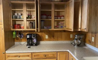 This place was wonderful for family to stay for my sons wedding at Folsom Ridge Ranch in Burlington Maine. There were PLENTY of bedrooms and space for everyone. Had everything we needed for our stay. It was too bad that it was raining most of the time we were there because the deck, fire pit area and dock looked great. Not to far from Lincoln center.