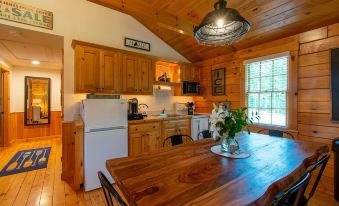 New cabins on a well manicured property. Super clean all the amenities that you can ask for. Small issue with TV but wasn't a big issue for us. I would recommend the cabin to anyone who wants to be there with family and friends.