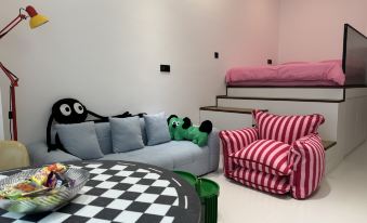 過來看煙花的,原野了這家民宿,因為裏面不同主題的房間非常有吸引力。民宿是公寓式的,很多其它房間都在裝修,電梯和樓道環境都不太完善。但一打開房門,感覺進入另一個空間。麻將雖小,五臟俱全,格局照明,特別是多巴胺風的房間,小朋友一看見就沖進去哇哇亂叫,他們特別喜歡裝在半空的床,有樓梯可以爬上去,在床上亂蹦亂跳的,高興極了。房間打掃的很乾凈,連洗手間也很乾凈,設施齊全,個人覺得挺不錯的。另外提一個問題:洗手盆的熱水和冷水管裝反了,和我們常用的不一樣。呵呵!