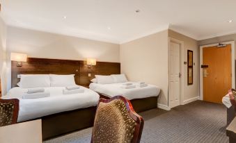 THIS IS NOT A BEST WESTERN. The photos on the website in no way resemble this hotel. I booked a Best Western, so knew what I was getting—or so I thought. We checked in and, running late for an event, quickly dropped our bags and headed out. It wasn’t until we returned around 2:45am that we discovered the room was in a shocking state: dirty, damp, and dusty walls; a stained carpet; an odd smell in the bathroom; and an exterior light beaming into the room through curtains that wouldn’t shut. The sheets were stained, the window frames were rotten and cracked, and there was cosmetic damage to nearly every item and surface. I couldn’t even bring myself to get into the bed. If I hadn’t needed to collect equipment nearby on the Sunday, I would have left immediately. I have asthma and it's a good job I had inhalers with me. We weren’t alone. In the morning, we encountered three other groups of guests who were equally appalled. I understand the property has just changed ownership, but that’s no excuse. The owners should not be accepting bookings until the rooms meet basic hygiene and safety standards. This was not just disappointing—it was wholly unacceptable.