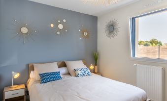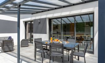 A very practical house, well decorated and bright. The terrace is pleasant, the petanque ground is a good idea . It is located 2 min walk from the beach and 5 min drive from the small center. The owners are available and very nice. I recommend.