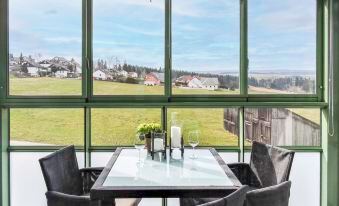 Apartment block "Taborstrasse". On the outskirts, 300 m from the centre. For shared use: indoor pool heated (16 x 10 m, seasonal availability: 15.Sep. - 15.Jun., extra). Table tennis, children's playground. In the house: lift, central heating system. Parking at the house. Supermarket 3 km, restaurant 300 m, bakery 4 km, bicycle rental 16 km, bus stop "Rathaus" 300 m, railway station "Löffingen" 5 km, outdoor swimming pool 500 m. Golf course (18 hole) 20 km. Nearby attractions: Freiburg 45 km. Well-known ski regions can easily be reached: Feldberg 35 km. Well-known lakes can easily be reached: Kirnbergsee 6 km, Titisee 23 km, Schluchsee 39 km. Free family ski lift 800 m. The holiday complex consists of two buildings connected by a corridor. Access to the indoor pool (fee required) only with online reservation. Current opening times on the Internet. During the summer holidays: indoor pool closed, outdoor pool free entry. PLEASE NOTE: The apartments in the apartment buildings can only be rented for tourist purposes. Company bookings only on request (confirmation required). "Flieder (F 96)", 2-room apartment 54 m2 on 2nd floor. Modern and tasteful furnishings: living/dining room with satellite TV (flat screen). Alcove with curtain with 1 x 2 bunk beds. 1 room with 1 double bed (2 x 100 cm, length 200 cm). Kitchenette (oven, dishwasher, 4 induction hot plates, toaster, kettle, microwave, electric coffee machine). Bath/WC. Balcony. Balcony furniture. Beautiful view of the countryside. Facilities: iron, children's high chair (extra), hair dryer. Internet (WiFi). Parking (1 car) at the house. Please note: non-smokers only. The balcony is glazed. Please note: The lower bunk bed is 140 cm wide. Bookings accepted for holiday purposes only. Instead of an enclosed bedroom, some sleeping areas are located in an open-plan area (gallery, alcove, etc.).